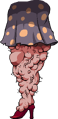 Mausoleum, her leg appears to be in a much more than sickly state; with many varicose veins lining it. - Her manus as well has a unique updated sprite despite the fact that she never uses it in this fight.